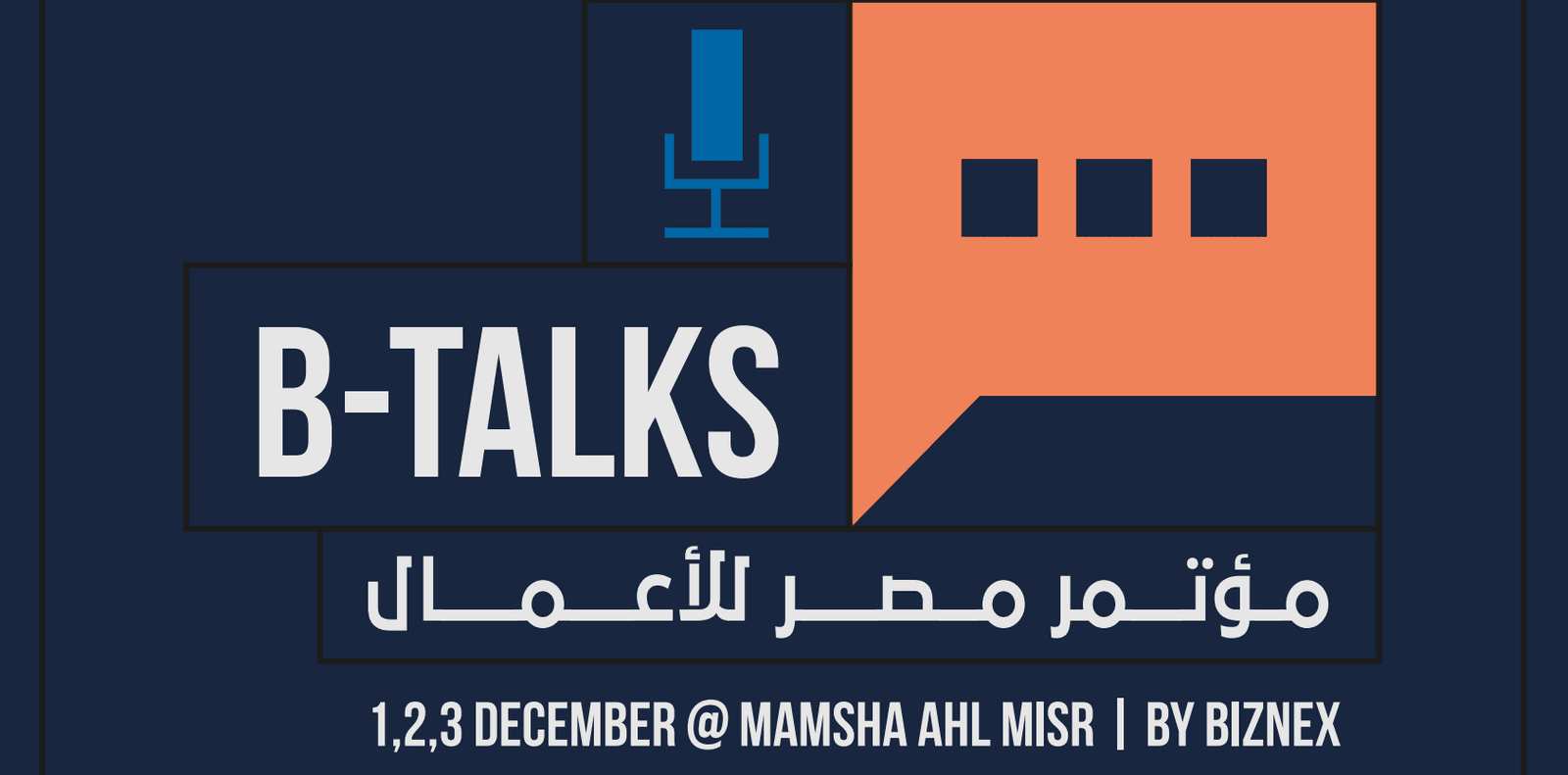 ويُقام على هامش المعرض مؤتمر مصر للأعمال B ’Talks لمناقشة فرص الاستثمار بمختلف المجالات وآخر تطورات الأعمال بالسوق المصري، بحضور نخبة من الوزراء والمسؤولين والكيانات الحكومية وخبراء ومستشاري إدارة وتطوير الأعمال بالإضافة إلى أصحاب أكبر العلامات التجارية في مصر والشرق الأوسط، حيث يُعد مؤتمر” مصر للأعمال“ أول وأكبر منصة لمناقشة الاستثمار والاقتصاد حول العالم وخاصة الوطن العربي.