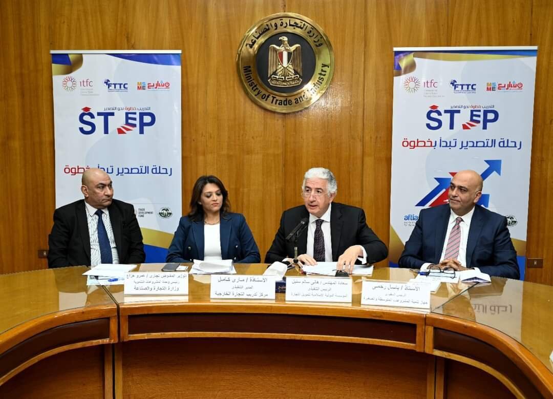 استضافت وزارة التجارة والصناعة الاحتفال الذي نظمه مركز تدريب التجارة الخارجية التابع للوزارة بالتعاون مع جهاز تنمية المشروعات المتوسطة والصغيرة ومتناهية الصغر والمؤسسة الدولية الإسلامية لتمويل التجارة بمناسبة إطلاق برنامج "التدريب خطوة نحو التصدير"، وشارك في اللقاء المهندس هاني سنبل، الرئيس التنفيذي للمؤسسة الدولية الإسلامية لتمويل التجارة، وباسل رحمي، الرئيس التنفيذي لجهاز تنمية المشروعات المتوسطة والصغيرة ومتناهية الصغر والوزير مفوض تجاري عمرو هزاع، مستشار وزير التجارة والصناعة للمشروعات التنموية، ومارى كامل، المدير التنفيذي لمركز تدريب التجارة الخارجية، إلى جانب عدد من المتدربين الملتحقين بالبرنامج.